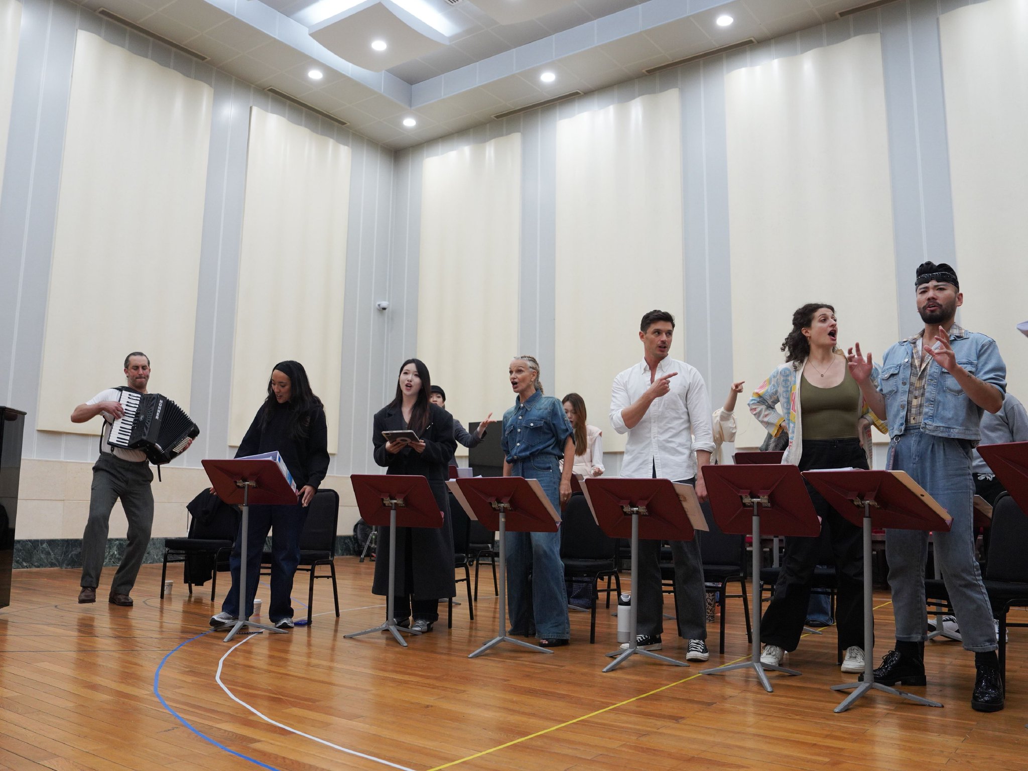 4月15日,音乐剧《大彗星》上海大剧院版音乐会举行媒体分享会并首度公开声乐排练现场。导演胡晓庆、副导演刘阳、音乐顾问菲兹·沙普尔(Fiz Shapur)与曾在2024年上海创制版中以“皮埃尔”一角温暖了无数观众的演员库珀·戈丁(Cooper Grodin)接受记者采访,一同揭开音乐剧《大彗星》全新版本的神秘面纱。在随后的声乐排练现场,剧组展示了《序曲》(Prologue)与皮埃尔独唱《尘与灰》(Dust and ashes)两首曲目,提前点燃了这场即将于5月上演的音乐狂欢。