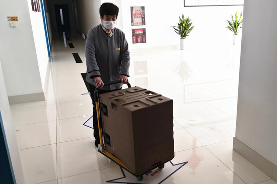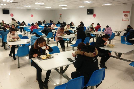 一些员工还主动将打包好的餐食带到办公室食用,或者“叫外卖”,让食堂工作人员推着餐箱送上门。