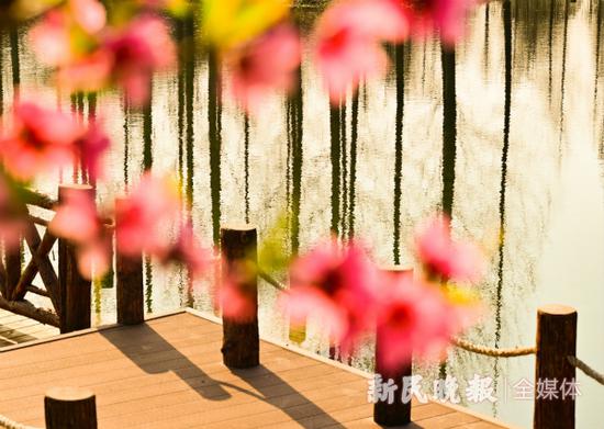 图说:青西郊野公园已然揭开了春的盖头。新民晚报首席记者 刘歆 摄(下同) 大莲湖和水漾湿地旁的芦苇还留有冬日的气息,荻花也悠闲地荡在水畔,岸边的垂柳已经抽出了嫩绿的枝条。拦路港沿路的结香花和红叶李竞争开放,微风送来阵阵清香。红极一时的水上森林公园退去了冬日的红妆,露出原本的模样,对岸的桃花渡,千亩桃林始吐芬芳,又是另一番意境。
