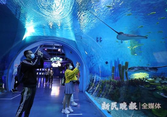 图说:上海海昌海洋公园今天恢复开园 新民晚报记者 周馨 摄(下同) 今天上午,上海海昌海洋公园、上海欢乐谷等主题乐园恢复开园,为市民和游客提供更多踏青、休闲、游乐、遛娃的好去处。主题乐园以线上虚拟排队券代替传统的长时间站立排队,为游客打造更称心的游园体验。