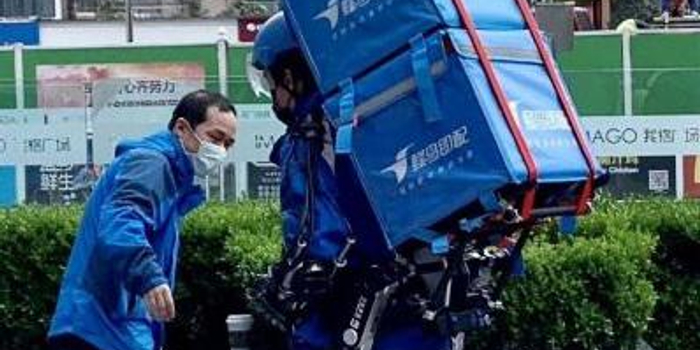 上海外卖员穿着外骨骼送外卖 网友热议:像极了未来战士