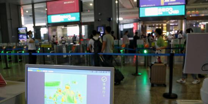 图说:虹桥火车站出站的乘客都需要进行红外测温。王凯 摄