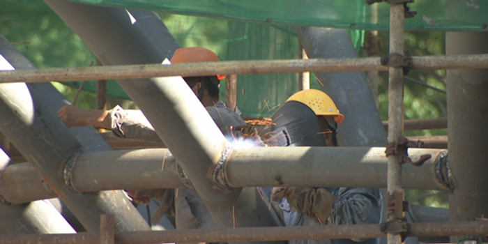 而与其毗邻的森林管理服务中心施工现场,工人同样挥汗如雨,马不停蹄地在施工作业。目前三层框架结构中,已建设至第二层,未来这里将集游客服务、餐饮、展示于一体,总面积超过5000平方米,是目前花博南园最大的在建建筑。