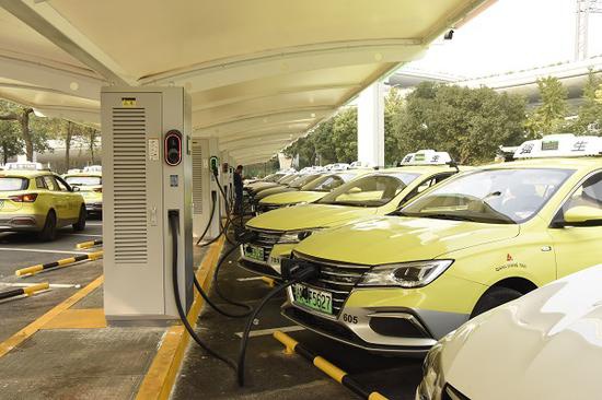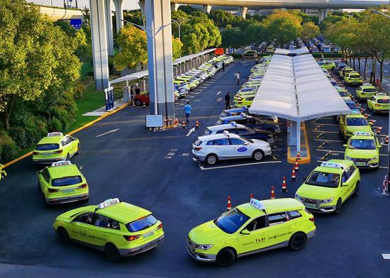 虹桥机场T2出租车充电站升级 42辆新能源出租车同时充电