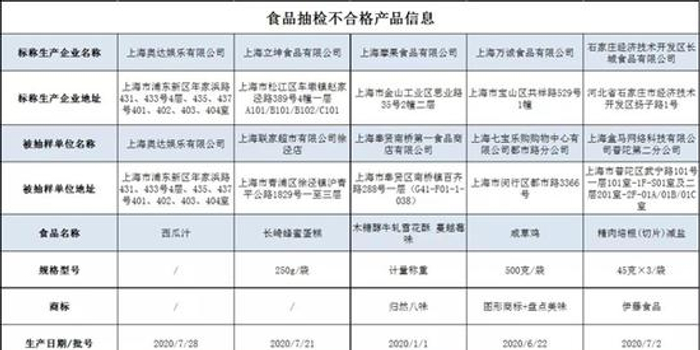 对上述抽检中发现的不合格产品,上海市市场监管局已要求相关区市场监督管理局及时对不合格食品及其生产经营者进行调查处理,依法查处,并将相关情况记入食品生产经营者食品安全信用档案。