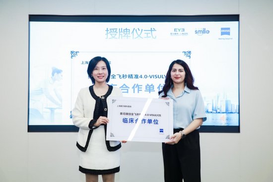 发布会,爱尔眼科上海总院作为全国首批引进微创全飞秒精准4.0-VISULYZE新技术的医疗机构被授予“蔡司微创全飞秒精准4.0-VISULYZE临床合作单位”荣誉称号。李霞院长表示,全飞秒精准4.0的成功发布以及全面应用,意味着爱尔眼科上海总院能够更好地帮助提升患者的术后视觉质量和生活品质,也是对医院屈光团队多年来开展全飞秒手术安全性和有效性的专业认证。