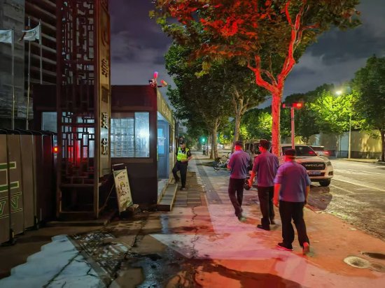 开展建筑工地夜间检查:晚22时,两地执法队员联合对交界处的2个建筑工地开展了突击检查,检查未发现夜间施工情况,但一家建筑工地于22时后仍未完全关闭场内强光,存在扰民情况。对此执法队员向工地负责人开展文明施工普法宣传,并要求工地立即关闭强光,排除干扰。