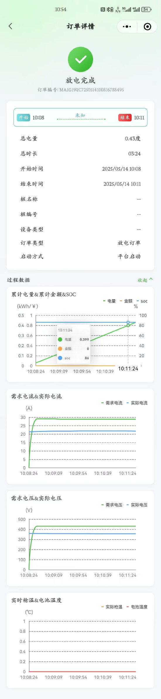 5月14日10:08至10:11,汪先生的电车在接收到测试指令后向电网输送了0.40度电。“现在有了V2G技术,充电桩不仅仅是个消费项目,还是一个省钱项目。低谷充电、高峰放电,既省了电费,又为社区做了贡献,这种电网互动模式值得大力推动。”车主汪先生对电网企业和桩企提供的全程支持表示感谢。本次测试中,电网物联表成功完成该反向电量的采集,数据监控平台实时采集功率曲线、放电时长及电量等数据,为后续技术优化和规模化推广提供有力支撑,也为虚拟电厂的高效运行积累关键数据。