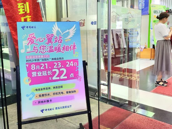 针对大量外地家长陪同参与、场外等候陪伴需求突出的情况,上海电信漕溪北路营业厅主动作为,演唱会期间将营业时间延长至晚上十点,“爱心翼站”服务同步延时,为等候的家长提供休憩场所与暖心服务,累计接待近五百人次。