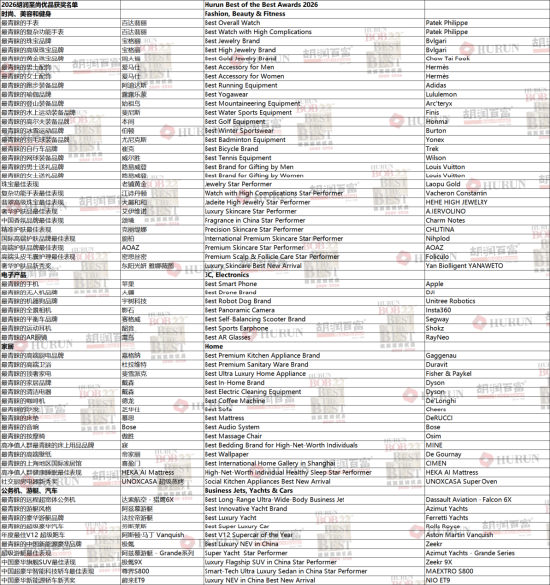 关注近日,胡润研究院发布《2026胡润至尚优品——中国高净值人群品质生活报告》(以下简称胡润至尚优品报告)。这是胡润研究院连续第22年发布此报告,旨在揭示中国高净值人群的生活方式、消费习惯以及品牌认知的转变与偏好,力图对中国高净值人群的生活形态变化做出描述。“胡润至尚优品”被广泛认为是面向高净值人群品牌的ISO。在第22届胡润至尚优品颁奖盛典上,极氪品牌荣获最青睐的中国新能源豪华品牌奖项,极氪9X荣获中国豪华旗舰SUV最佳表现。同时,极氪009及009光辉作为活动官方指定用车,为企业家提供接送服务。