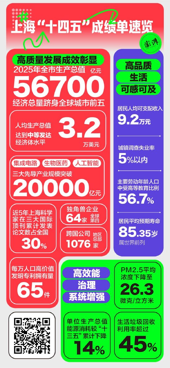 一图速览|这份上海"十四五"成绩单 含金量有多足? 综合 02月02日 13:09 关注 确定不再关注此人吗 来源:澎湃新闻 原标题:《一图速览|这份上海“十四五”成绩单,含金量有多足?》 分享文章到: