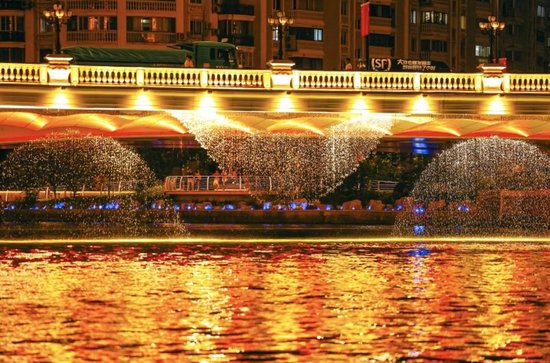 图为璀璨的城市灯光点亮夜空,但也可能对周边居民楼产生影响,需科学评估。/文汇报记者张伊辰摄