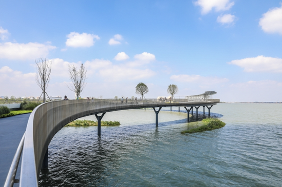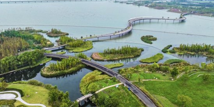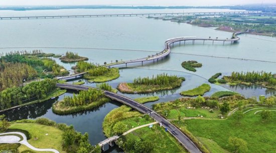 图为长三角生态绿色一体化发展示范区首个跨界湖泊滨水岸线生态修复项目。/文汇报记者张伊辰摄