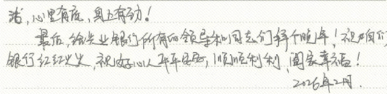 事后,这群朴实的农民工兄弟联名写下感谢信,按上鲜红的手印,专程送到支行。信中写道:“那天亮着的不只是银行的窗户,更是你们为我们点亮的一盏‘暖心灯’。在这个大城市里干活,有你们在,我们心里有底,身上有劲!”