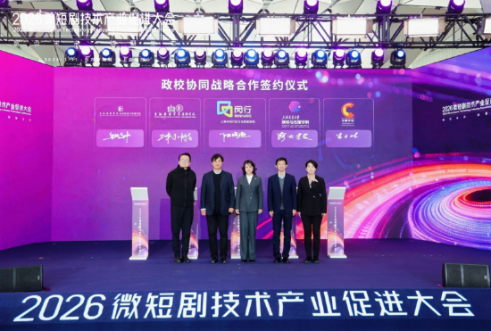 大会现场亮点纷呈,多项重磅举措同步落地。上海市网络视听行业协会正式入驻揭牌;著名作家却却团队签约落户;三笙出海、鸣白文化、之远文化等一批头部微短剧企业集中电子签约;东方智媒城AIGC视听创制基地、孵化器集群正式亮相,阿里云、恒星AI等AI生态伙伴携手共建,形成孵化—创作—制作—发行的完整闭环。