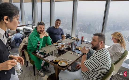 俄罗斯游客在J酒店101层餐厅用午餐。 孟雨涵 摄