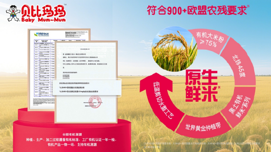 贝比玛玛新品率先在行业内实现“双无承诺”:无添加糖、无添加果汁。其配料表简洁清晰,仅含五种配料,仅保留通过中国有机认证大米的天然原香。这不仅是响应《国民营养计划》及“健康中国2030”战略在婴幼儿喂养层面的具体实践,更是从生命早期干预入手,致力于培养下一代清淡健康饮食习惯的社会责任体现。产品同步获得的中国有机产品认证与婴幼儿辅食生产许可,构成了其品质合法合规的双重护盾。