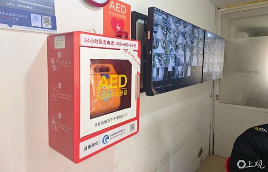 浦东新区张杨路一小区门卫室内的AED 摄影:徐程