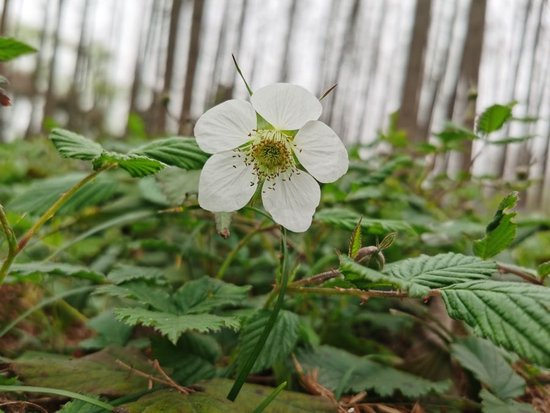 其中,白色的花是蓬蘽的花,眼下,它刚进入花期,开出一朵朵白色的五瓣小花,用清甜的香气吸引蜜蜂前来传粉。待到春末夏初,它会结出红彤彤的“小草莓”,香甜可口,成为鸟类与松鼠等小动物的重要口粮。