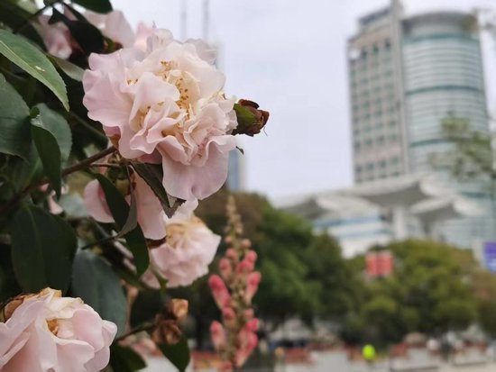 人民广场绿化带里的“烈香”山茶。 陈玺撼摄