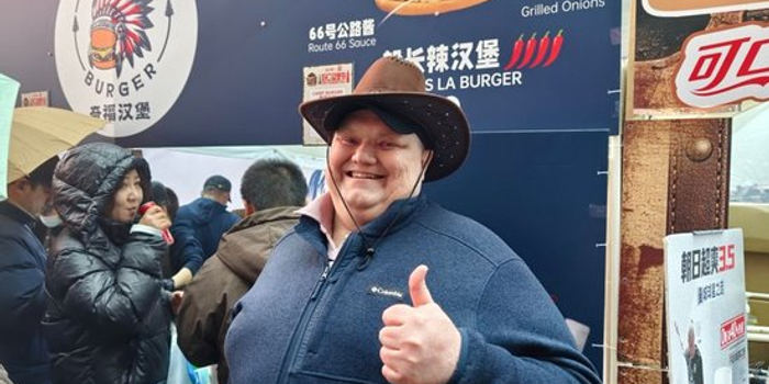 3月20日傍晚,豪雨如注,陆家嘴中心L+Mall商场的下沉广场化身牛仔复古风的“汉堡乌托邦”,气氛温馨。一位头戴复古牛仔帽的大高个,热情地招呼往来的客人。他叫迈克,来自美国俄克拉荷马州,是南京“奇福汉堡”的主厨。