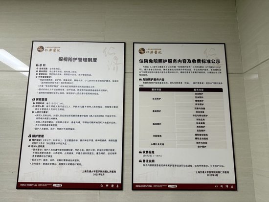 复旦大学附属中山医院是上海“免陪照护”服务量最大的医院之一。2025年5月,该院率先在重症监护室(ICU)和部分病房试点“免陪照护服务”,同年8月逐步推广至更多病区,并同步调整相关管理流程。自2025年10月起,除特需等病房外,医院已实现“免陪照护”全病区覆盖。