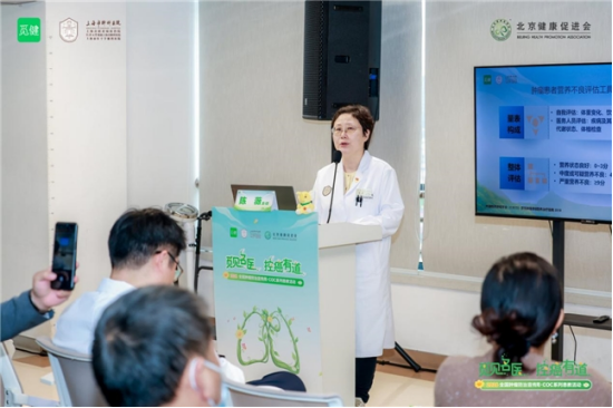随后,临床营养科陈薇主任就肿瘤患者的核心关切——“如何吃”进行了系统讲解。 陈薇主任指出,肺癌患者营养不良发生率高达 57%,直接影响治疗耐受与预后。她围绕营养评估、五阶梯干预、能量与蛋白摄入标准、分阶段营养管理及免疫营养补充等内容,给出科学饮食指导。陈主任最后介绍了医院营养门诊的服务,为患者提供了获取持续、专业营养支持的可靠渠道。