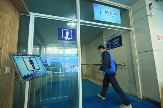 游客进入更衣间后,能够使用的更衣柜也被分为相互间隔的A、B两组。一个时段后,包括钥匙、更衣柜都将进行消毒,交替使用确保安全。
