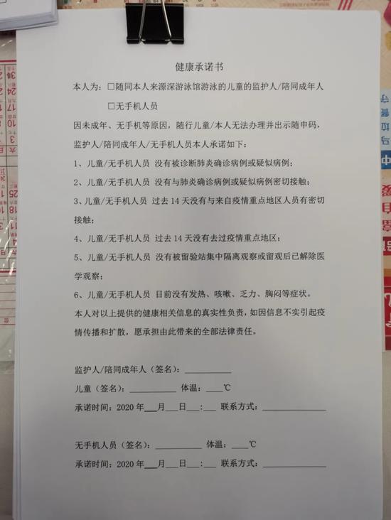 3、泳客须戴口罩,测体温,出示“随申码”。