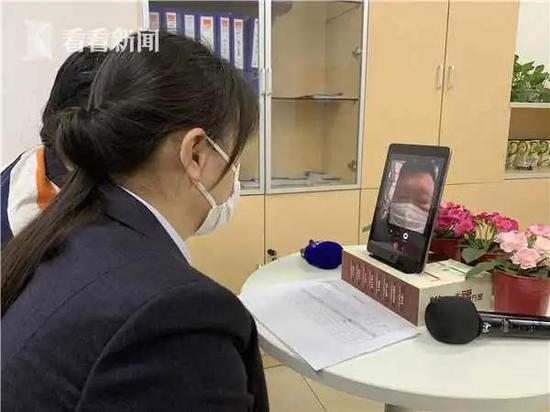 一场视频面试在虹口区市民驿站嘉兴路街道第一分站举行,虹口安保公司的人事专员对前来应聘特保特勤岗位的人员进行第一轮网上初试。