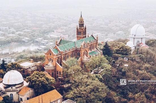 还有佘山天主教堂,又叫做佘山圣母大殿,集多种建筑风格于一体,其拱形、甬道为罗马式,廊柱为希腊式,尖顶为哥特式,清水壁和斗角地砖为中国民族式…看看这教堂,不知道的还以为是哪个欧洲的小城堡呢~