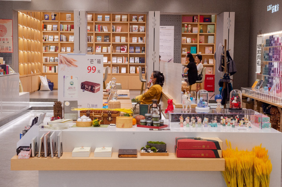 店内不仅有文创产品,还有茶叶展墙与茶饮体验区域和骆新开具的书单,喜欢看书的小伙伴,不如来这里坐坐,喝茶看书,坐享浮生半日闲。