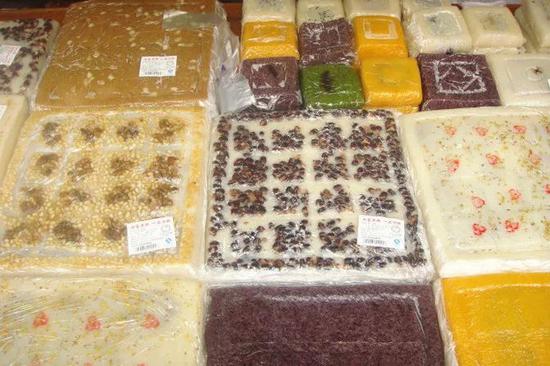 七宝农家糕种类众多,最负盛名的便是七宝方糕。新鲜出炉的方糕热而松软,有豆沙、枣泥、芝麻等多种馅料。