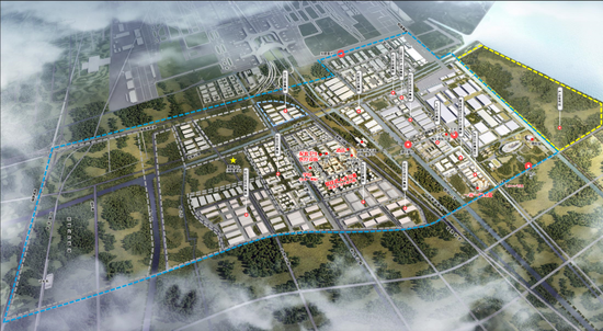 在园区内,围绕机场临近空侧,打造国际化航空生产性服务业一站式平台,包括国际航空金融中心、航空物流、MRO(飞机维修)、航空展示(飞机、艺术品、高价值奢侈品等)、模拟机培训、航空货运枢纽服务。