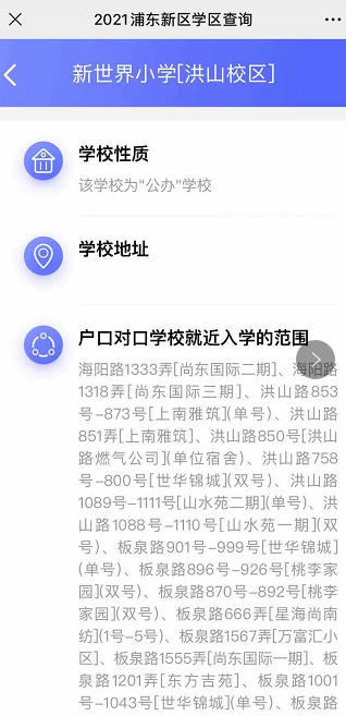 浦东小学、初中对口地段表一键可查 查询攻略一览