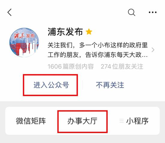 02、点击“进入公众号”进入到浦东发布的主界面